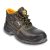 Zapato de seguridad de tipo botín hecho de piel vacuna color negro y forros foamizados transpirables. la puntera es metálica. la planta es anti perforación metálica. el zapato de seguridad modelo ares también es antiestático y antideslizante. marca: beewo