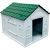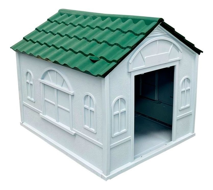 Casa para perro grande con diseño bicolor techo color verde y paredes de color blanco con textura que da apariencia de una pequeña casa clasica