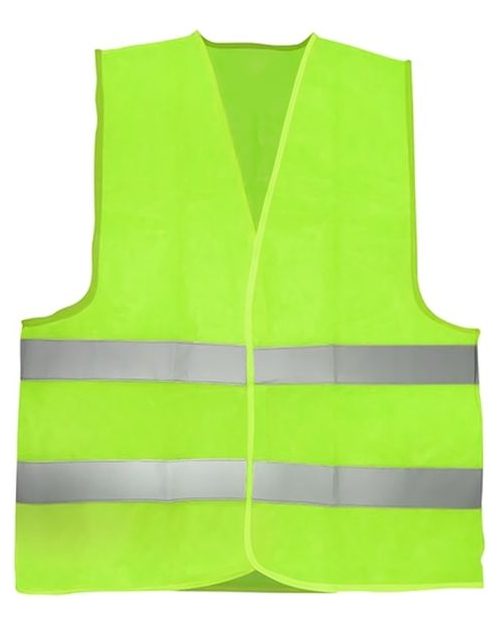 Chaleco reflectivo de color verde confeccionado en tela de malla 100% poliéster con dos cintas reflectivas. talla única.