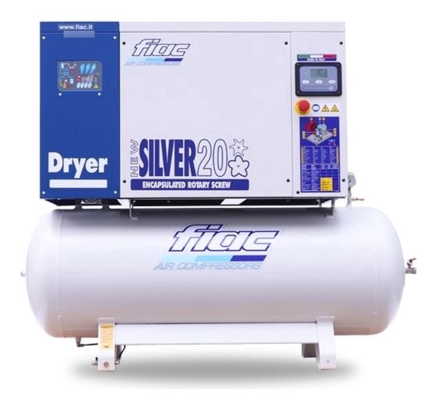 Compresor de tornillo fiac de 500 litros 67 cfm 20hp trifásico con secador.