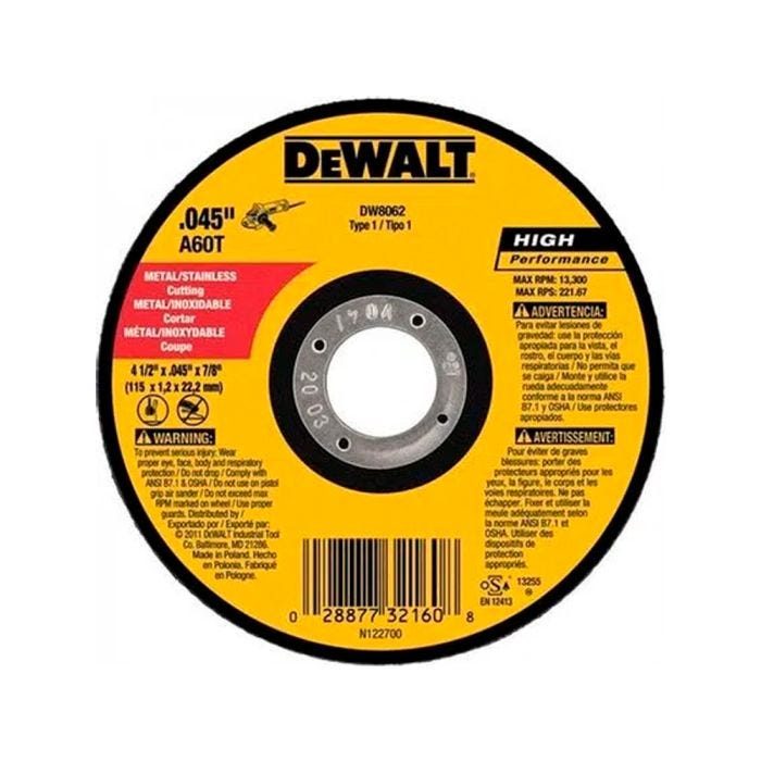 Disco corte metal/inox 41/2”x0.45×7/8” dewalt