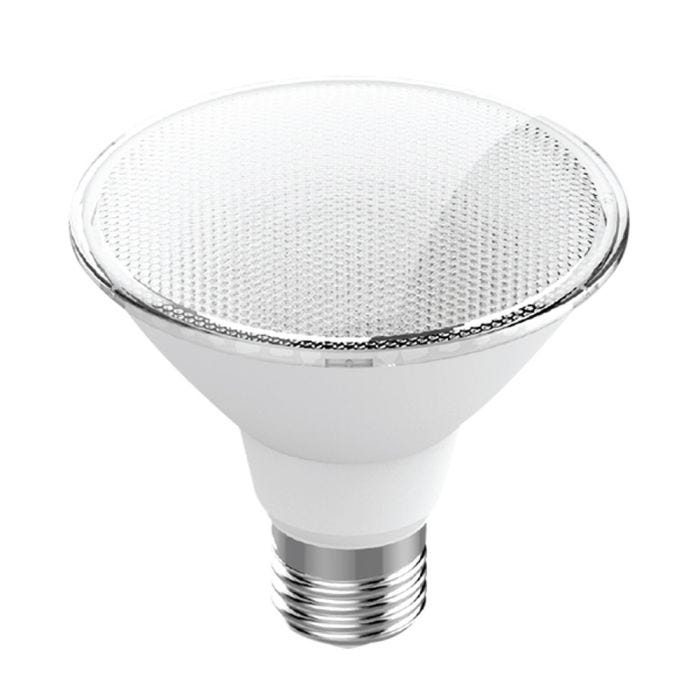 Foco reflector led dimerizable par30 de 12 watts con una temperatura del color de 4000k. vida útil de 25.000 horas. utiliza boquilla estándar e27