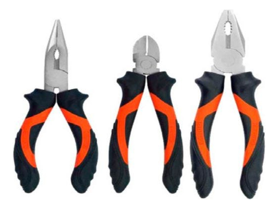 Juego de 3 alicates. incluye: playo. pinza punta larga y corta cables. los alicates tienen mango de goma. marca kendo