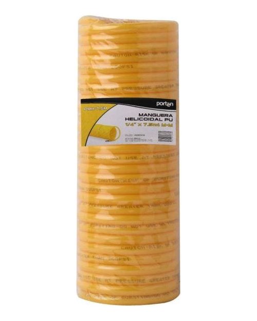 Manguera neumática helecoidal con terminales macho – macho. manguera de 1/4 de pulgada. longitud de 7.5 metros para aire a 120 psi. porten