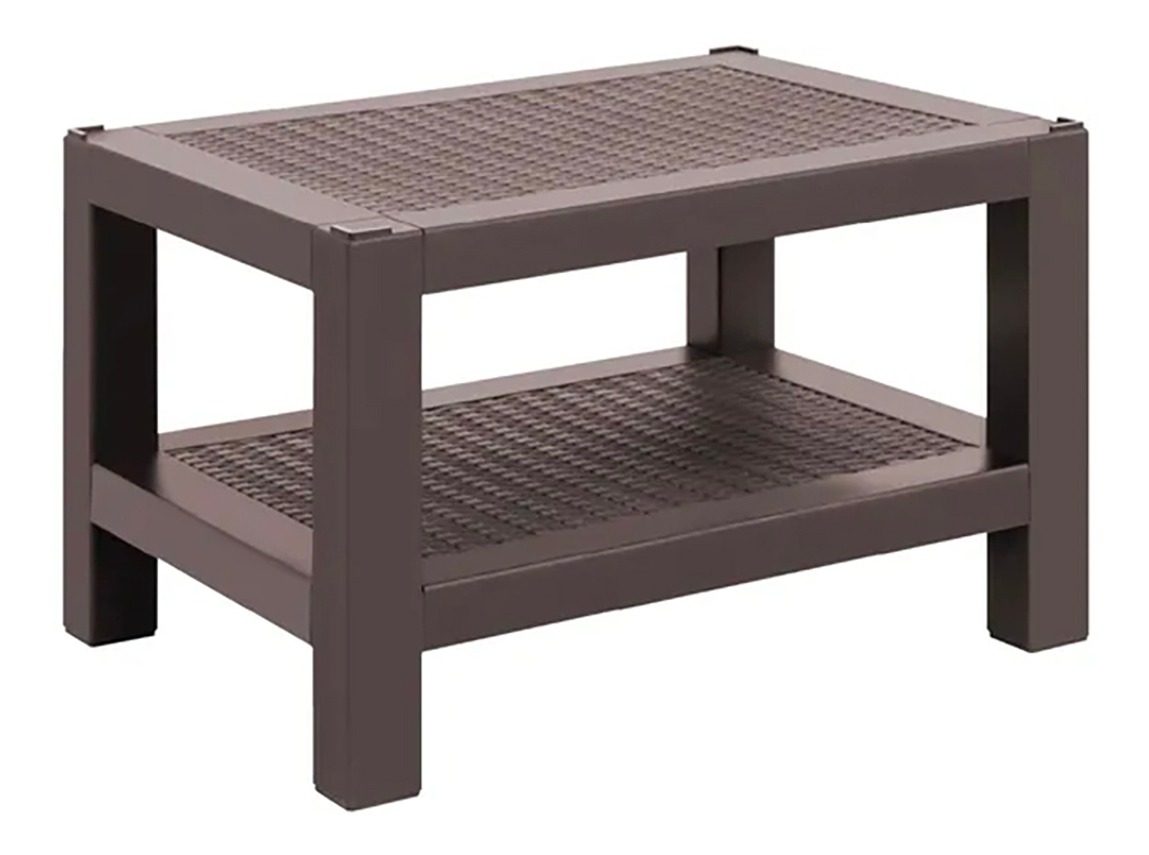 Mesa ratán sin vidrio. 2 niveles. café. pica