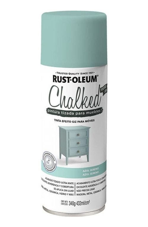 Pintura en spray ultra mate con excelente cobertura y adherencia en muebles y objetos de decoración. brinda un efecto vintage. color azul sereno.