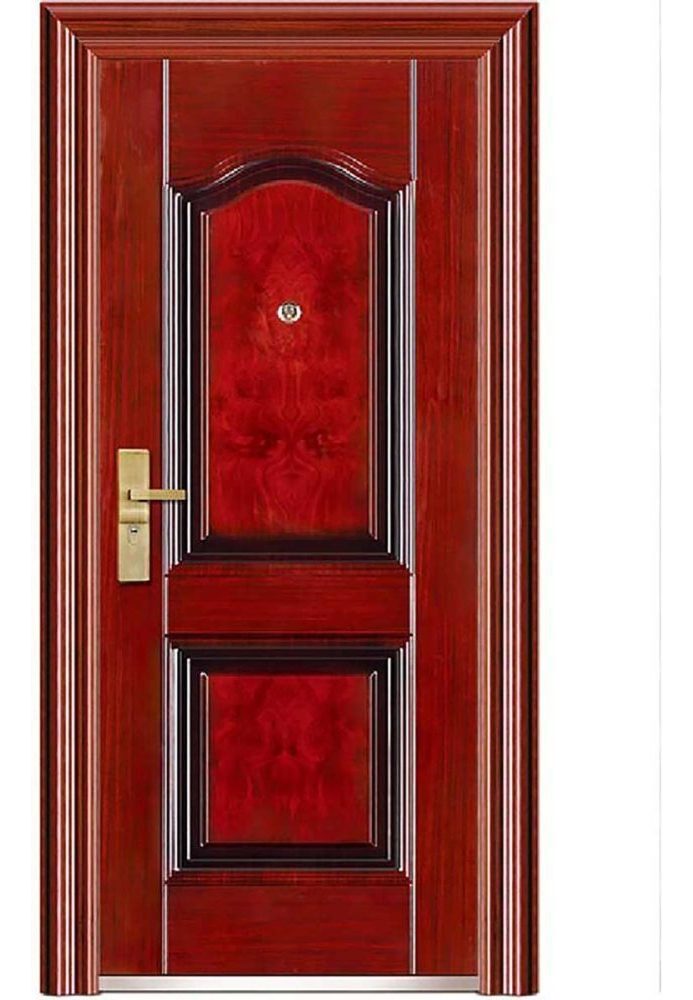 Puerta metálica café. 2 paneles. apertura derecha. 9 puntos de seguridad. hoja de 0.8 mm. protección uv. para uso en ambientes interiores. incluye: manija. mirilla. cerradura. dimensiones: 96 x 205 cm.